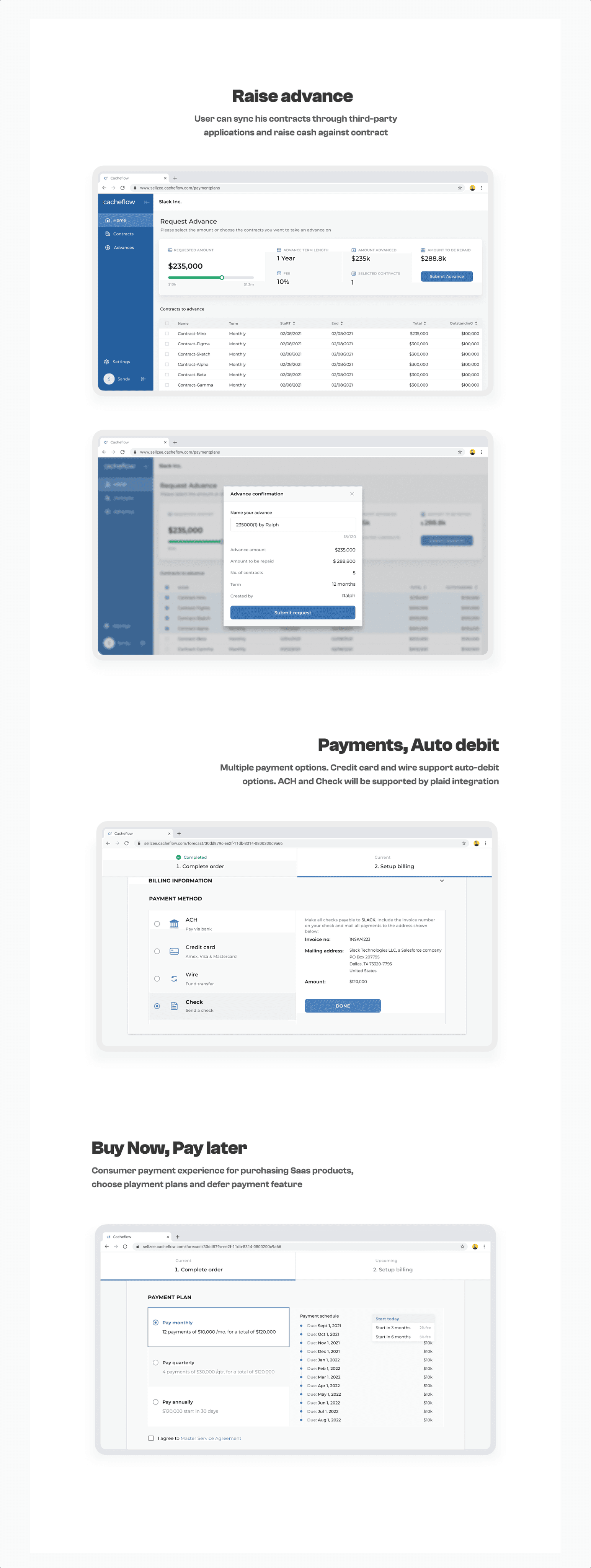 Using Cacheflow, SaaS companies can raise capital upfront without pledging their stakes. Also, it offers end-to-end billing and financing solutions for its customers.