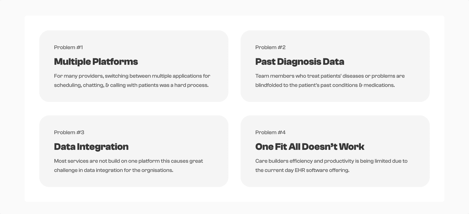 As part of the research plan, we have conducted expert interviews with CEO Jonathan Bush, Evan Wittry Head of engineering at Firefly, and a few others. Which gave a deeper understanding of healthcare, their workflows, and the problems they face. The following are some major takeaways that assisted us in identifying possible prospects.